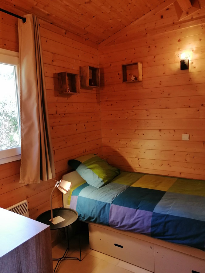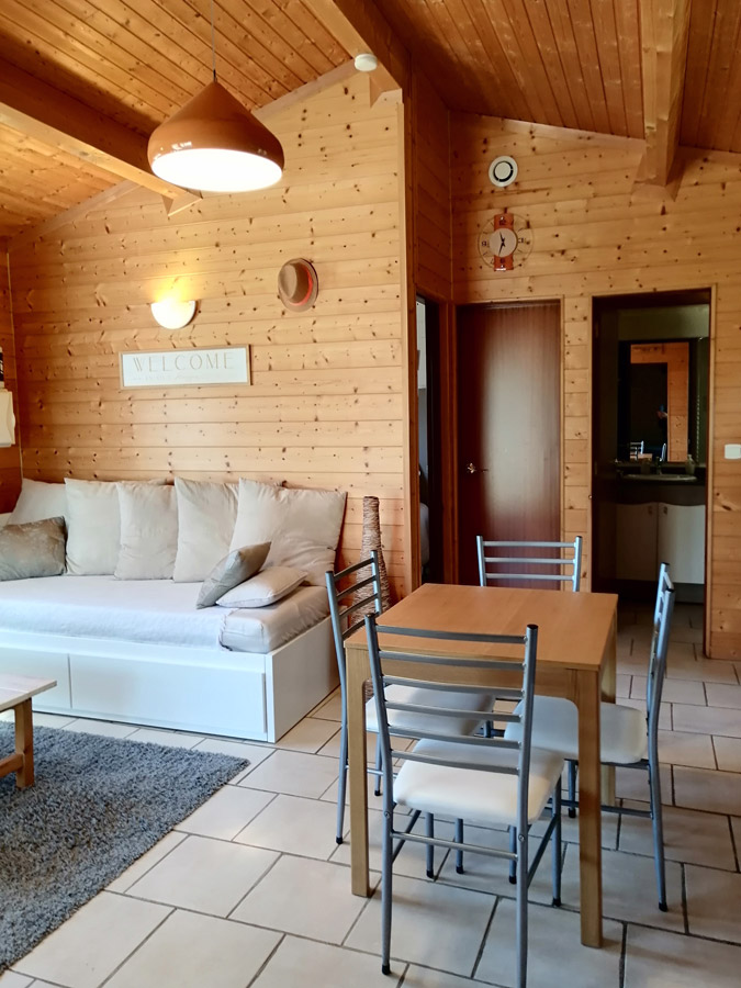• Chalet bois situé à 5 mètres avec douche à l’italienne et wc privatifs.